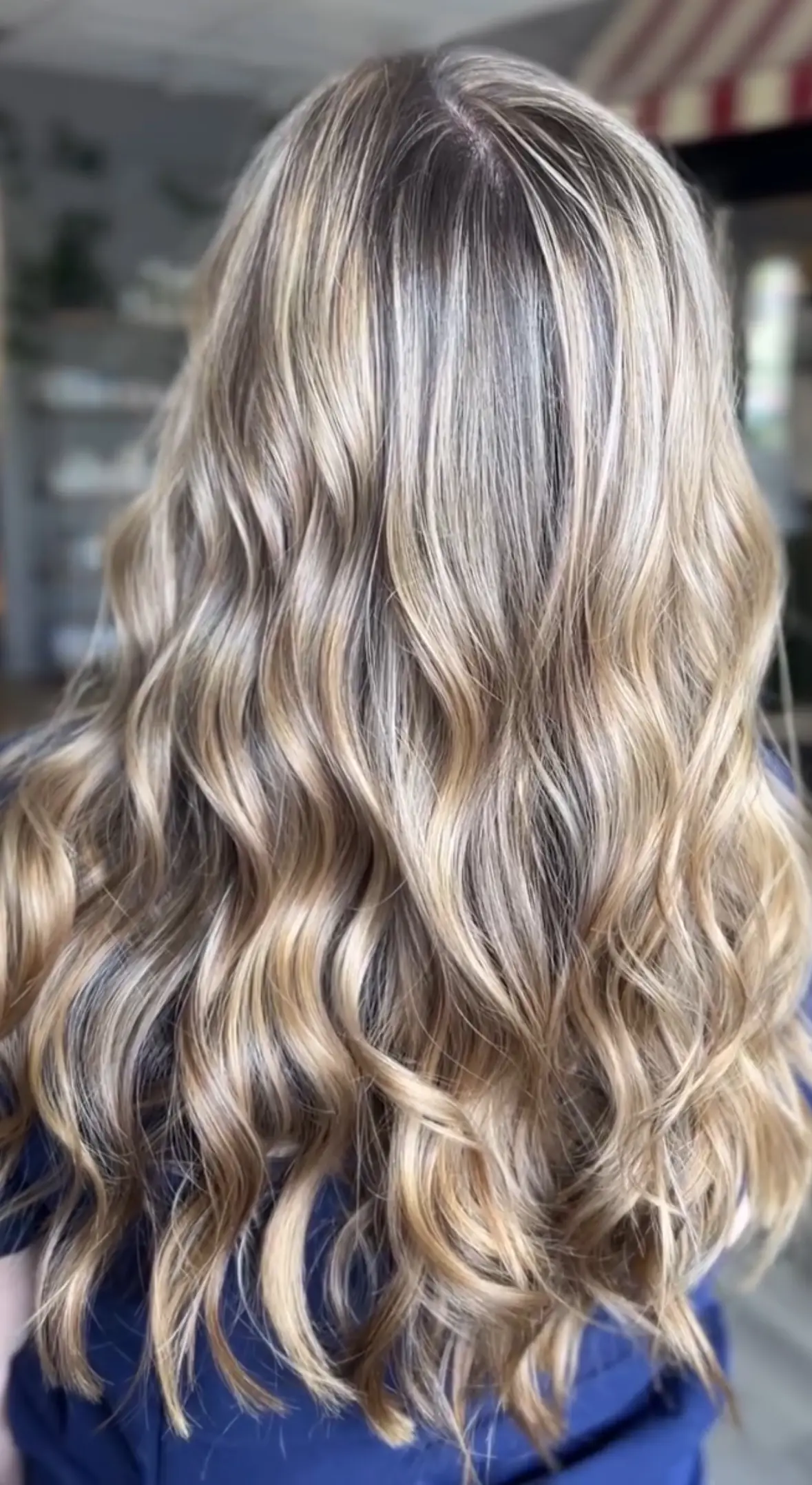 Root melt and adding lowlights back into the hair for dimension and depth. Includes a blowdry style